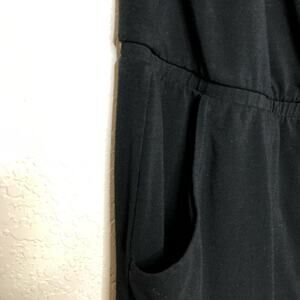 Garnet Hill black tank sleeveless jumpsuit. Scoop neckline. Sleeveless. Double side pockets. Elastic waist. Size 4. Excellent preowned condition. Minor wash wear.