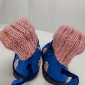 Garnet Hill by Haflinger Kids Boiled Blue Wool Cat Slipper Boots Size 9