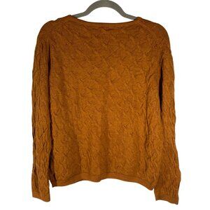 Crafted with a luxurious blend of baby alpaca and pima cotton, this Garnet Hill sweater delivers on style and comfort. The rich rust color adds warmth to your wardrobe, while the cable knit pattern offers a cozy texture. Ideal for colder seasons, this piece is a staple for layering.