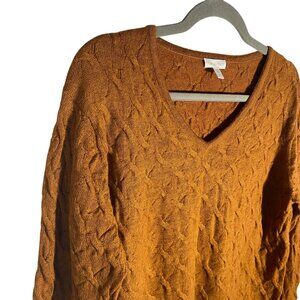 Garnet Hill fitted V neck soft Cable Knit Sweater L Baby Alpaca & Pima Cotton