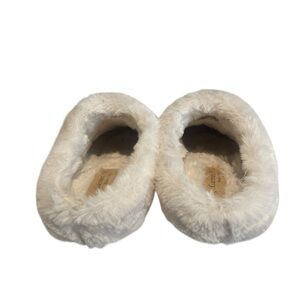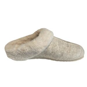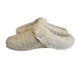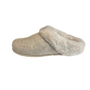 Garnet Hill brand slip on faux fur lined slippers in a light gray wool? Like new condition.