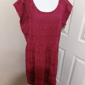 Garnet Hill pink cap sleeve lace dress lined synched waist wedding guest 18