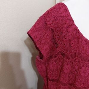 Garnet Hill pink cap sleeve lace dress lined synched waist wedding guest 18