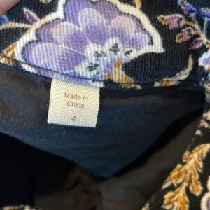 Garnet Hill purple floral corduroy wide leg pant size 4