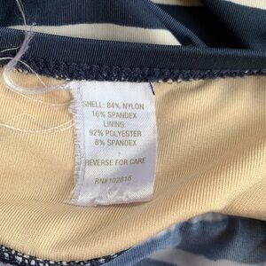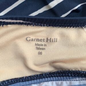 Garnet Hill size 6 blue and white striped swim dress. Gathering at chest. No rips or snags. Adjustable halter strap. Lightly padded.