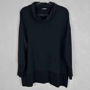 Garnet Hill size L cowl neck knit tunic black oversized tencel French terry