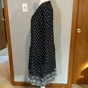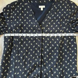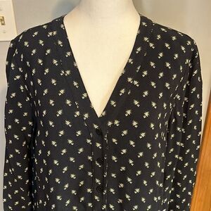 Front patch pockets. Full button front and buttoned sleeves. 100% viscose