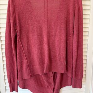 Garnet Hill women's oversized cocoon cardigan sweater, size medium. 100% linen. Reddish-pink color. Longer in front. Slouchy style. Gently worn, in excellent used condition. No rips or stains.