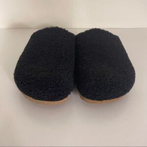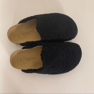 Great, like new condition Garnet Hill Black Furry Top Slip On Slide Shoes