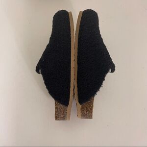Garnet Hill Black Furry Top Slip On Slide Clog Shoes