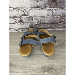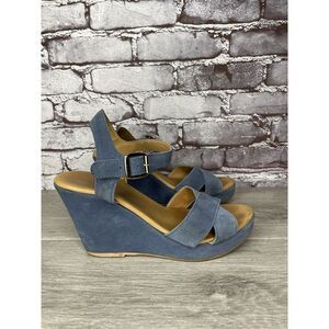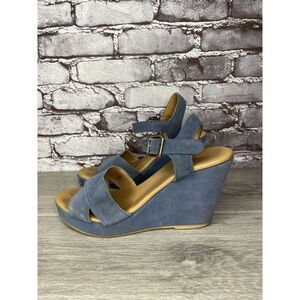 Garnet Hill Blue Suede Leather Wedge Ankle Strap Sandals Women Sz 9M US/40EU
