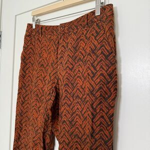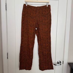 Garnet Hill Pants Womens Sz 8 Orange Rust 100% Linen Chevron Print Wide Leg Boho