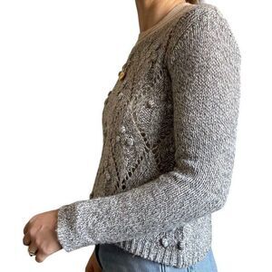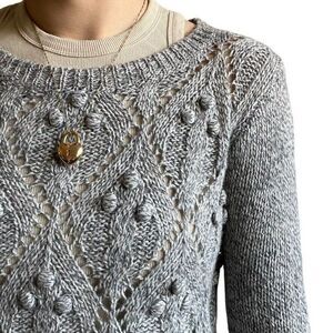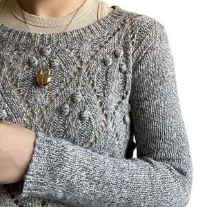 Garnet Hill Womens Alpaca Blend Gray Lace Knit Spring Crewneck Sweater Sz XS