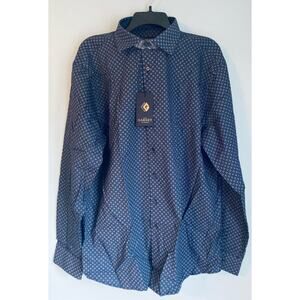NWT button down shirt in a blue dot like pattern. Brand is Garnet, size 3XL, is 100% cotton. Excellent shirt in perfect condition. Creases are there because shirt was taken straight out of packaging to take pictures. MSRP $165! See pictures. Questions and reasonable offers are welcome! Thank you for looking!