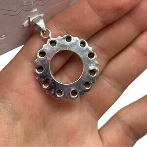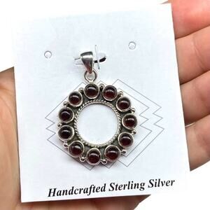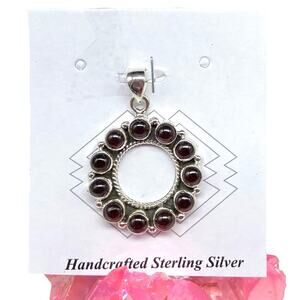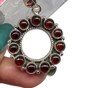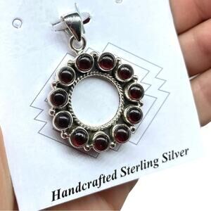 Beautiful! Handcrafted genuine garnet natural stone pendant. Solid sterling silver and stamped 925. Total length is approx 1 5/8”.