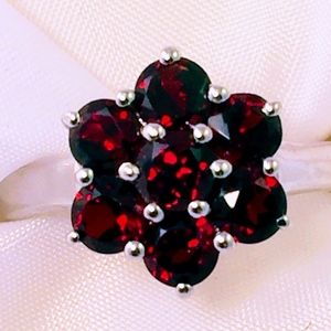 Beautiful Women’s 2.24 CTW Flower Shaped Garnet Ring. Rhodium over Sterling Silver. New in Box w/ Tags. High Quality Low Price!