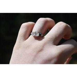 Handmade garnet and Lake County diamond ring in sterling silver size 7.