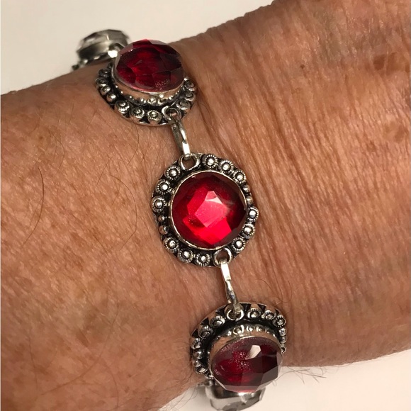 Luxury Mid~Century,Avant-garde,Gothic,Renaissance, Victorian, 925 Sterling Silver Garnet Bracelet