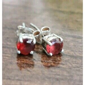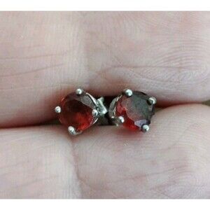 Garnet Stud Earrings 925 Sterling Silver Simple Elegant 1g Signed