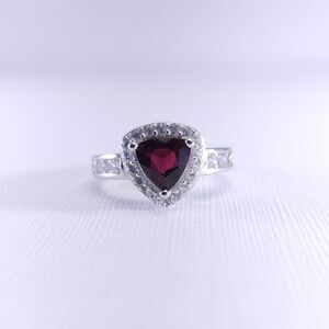 Garnet Trillion Ring with CZ SIZE 7-1/2