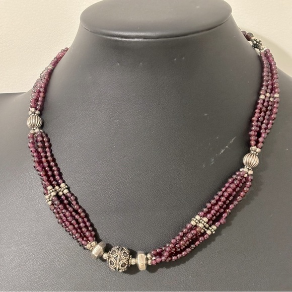 Garnet and sterling silver beaded 5 strand necklace 16” length 8” drop