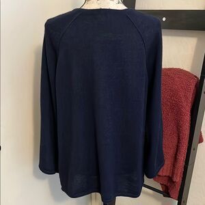 Garnet Hill Blue Baby Alpaca V-Neck Wide Sleeve Pullover Sweater, size large. Please note; has signs of wear & piling.