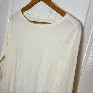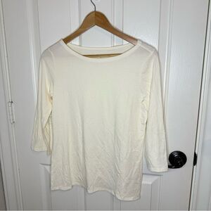 Garnet Hill Crema Heather Essential Three Quarter Sleeve Boatneck Tee Sz S Basic
