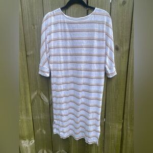 Garnet Hill Relaxed Organic Linen Striped Dress XS
