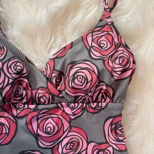Garnet Hill Floral Gray & Pink Tankini Top | SZ 4