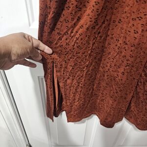 This elegant sleeveless dress features a rich brown color, perfect for any occasion. Its simple yet sophisticated design makes it a versatile addition to your wardrobe.The Garnet Hill maxi dress is a sleeveless, dress with a black animal print. It features a surplice V-neck with a button closure and an elasticized waist. The dress is made from a lyocell-spandex blend and is lined to the knees. It also has a side slit at the hem. The dress is described as being in excellent condition. {Box21}