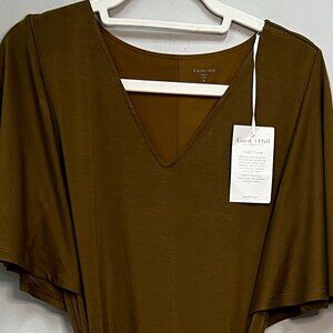 Garnett Hill Flutter-Sleeve Knit Midi Dress In Olive Size M