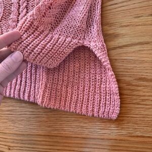 Garnett Hill Linen & Cotton Cabled Pullover in Desert Bloom Pink Size M