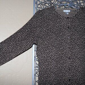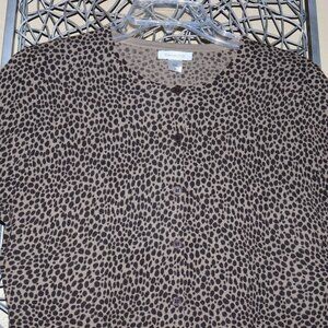 Garnett Hill Medium Button Up Brown and Taupe Cheeta Print Cardigan