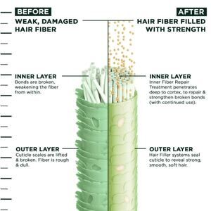 Apply Bonding Inner Fiber Repair Treatment, rinse, and follow with Moisture Repair Shampoo, Conditioner, and Serum