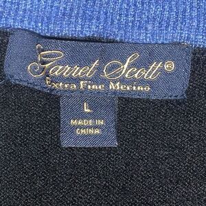 Garret Scott Mens Large 100% Extra Fine Merino Wool Pullover Vest Black V Neck