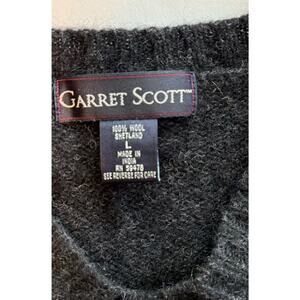 Garret Scott Sweater Men’s LG Shetland Wool Charcoal Gray Professor Grandpa Warm