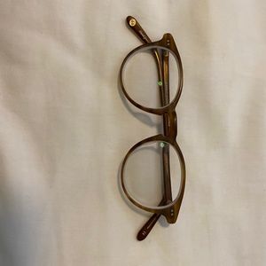 The Winward is a small P3 optical frame with tapered curves. Size 44 in True Demi color (light tortoise)
