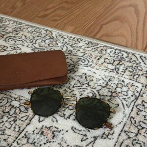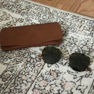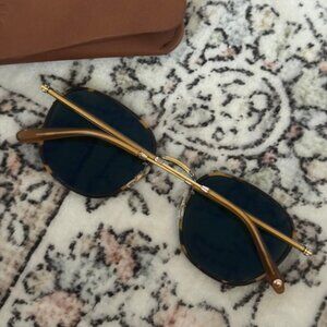 Brown tortoise rimmed round sunglasses with gold hardware. Worn but in very good condition!
