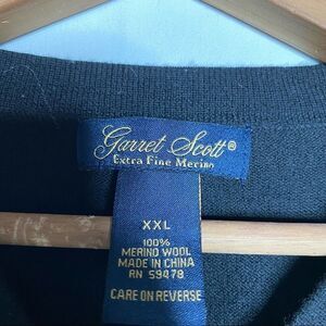 Garret Scott Black Extra Fine Merino Wool V-Neck 49ers Embroidered Sweater