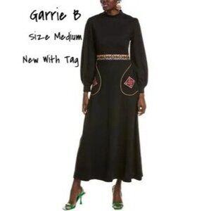Garrie B Embroidered Maxi Dress Women's Black Turtleneck Medium New With Tag