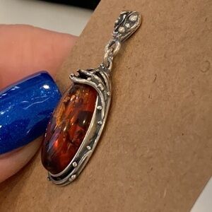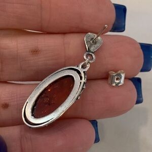 Garse single earring sterling silver genuine amber. Would make a great pendant