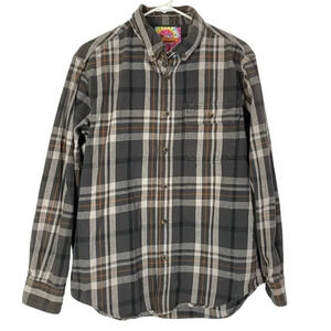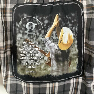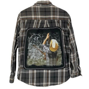 Garth Brooks Band Flannel Shirt Shacket Mens Large Plaid Button Down Grey Black