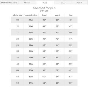 1X Bust 42 Waist 35 Hips 45 Dress size 16