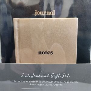 NWT Gartner Studios Black Gold Vegan Leather Journal 2 Piece Gift Set. Great for gift giving! 1 large journal with page marker, black colored, 192 lined pages, 5.75" x 8.13". 1 small journal, gold colored, 192 lined pages, 3.5" x 5.5". Brand new with tags! 2 available.