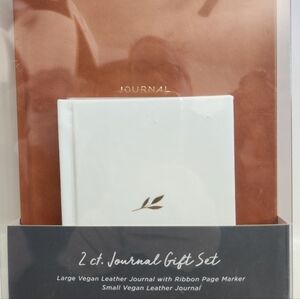 NWT Gartner Studios Cream Tan Gold Vegan Leather Journal 2 Piece Gift Set. Great for gift giving! 1 large journal with page marker, tan colored, 192 lined pages, 5.75" x 8.13". 1 small journal, cream colored with a gold leaf, 192 lined pages, 3.5" x 5.5". Brand new with tags! 2 available.