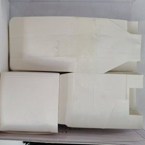 One box is sealed (50ct) and one is open (48ct). Two are missing because they were tried and then wedding was cancelled. The circle where the monogram is customizable with a printing template. See all photos for condition detail of open box.