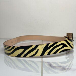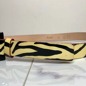Garuglieri Italy Ivory White & Black ZEBRA Print Glossy Patent Leather Belt S