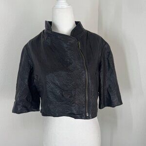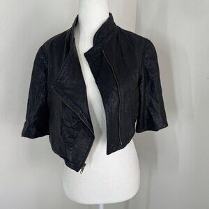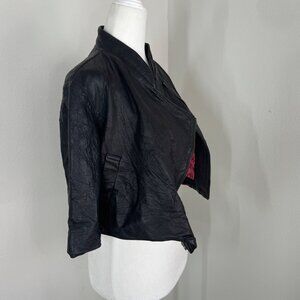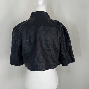 Gary Graham Black Leather Bolero Jacket Cropped Size 4 Pink Lining
