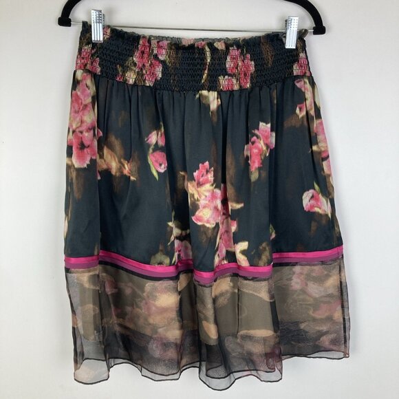 Gary Graham Floral Boho Black Silk Skirt Size 4 Knee Length