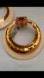 Elegant gold hoop earrings featuring a striking red gemstone. Perfect for adding a touch of luxury to any outfit.